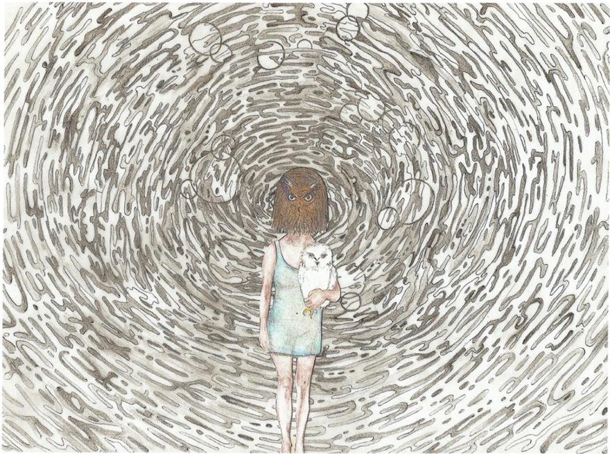 Ku is the king; but it’s also the big bird of the Yaquis legend, the maya Hunab-ku, the cosmic butterfly, the black hole… and also the ku band, microwaves primarily used for satellite space shuttles’ communications. Birds are here very protagonists, also due to the album’s title, with all their magical and symbolic powers: eagle stands for sun/zeus, authority, strength, but also shamanism; peacock symbolizes stars/fire, eyes/immortality, but also vanity, and owl, the lonely wise one, relates to darkness/night/Great Mysteries, but also to Athena. “The owls are not what they seem”.