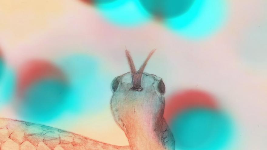 “I think this is the story of two slightly alienated people and a snake that goes everywhere it wants.Life and death and art. And their way of being in the world.” Carla Bozulich…It’s a little story of two people and a snake.They seem on a journey and a female body is some of the road, objectified as a landscape but also a snake master.The snake crawls on dusty roads in a wild nature; it’s the life mystery, connected with guts’ labyrinths.The snake is the venom and the anti venom, the evil and the care.It’s the ouroboros, the eternal return of an open road. It’s an archetype, an Origin myth.Like the indigenous giant rainbow serpent, creator of everything in the universe,inhabitant of deep waterholes, moving from one to another when a rainbow is in the sky.These holes are here symbolized by a window, between the inside and the outside.If you go deeper you see the snake as a cosmogony. There’s the world in your belly.