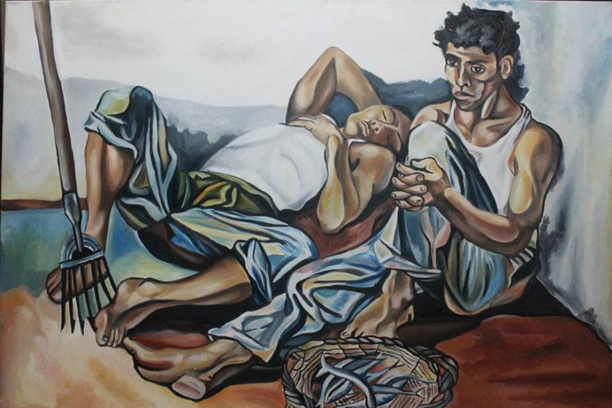 Omaggio a Renato Guttuso, "I pescatori". Il dipinto è realizzato con tecnica ad olio su tela ed è di dimensioni 70x100.