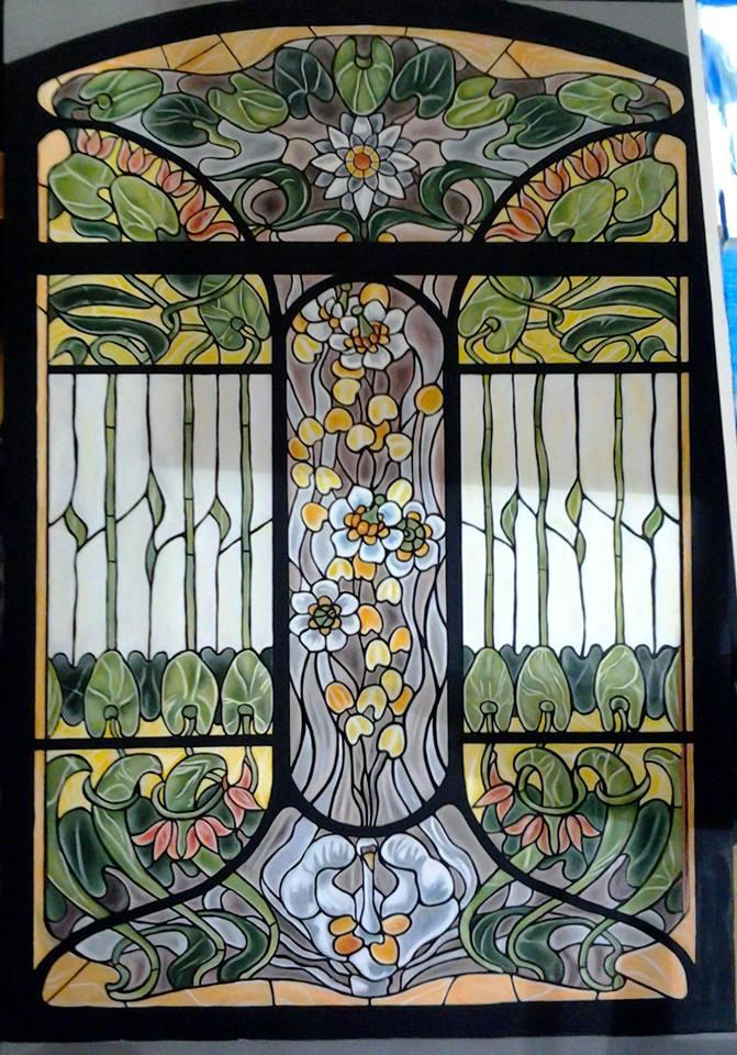 Replica della vetrata realizzata da Alphonse Mucha, con tecnica ad acrilico su tavola di dimensioni 100x150