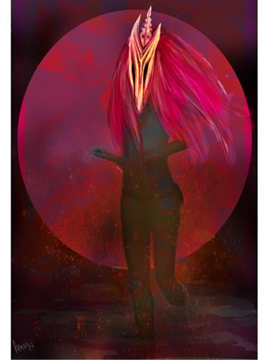 Una sciamana che cammina nel nulla ma che al contempo ha il sole e la luna dietro si se. Due lati luminosi e oscuri della stessa persona che emergono durante tutta la vita.