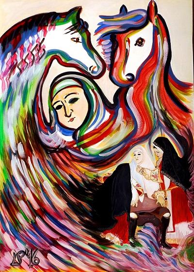 Vestizione del Campidori per la celebrazione della Sartiglia di Oristano, Sardegna.