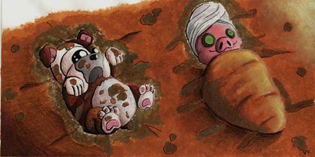 Il mio cane si comporta come un maialino che sguazza nel fango!^^ Illustrazione realizzata con Acrilico, China, Pastello e...la sabbia del mare Adriatico!!:P