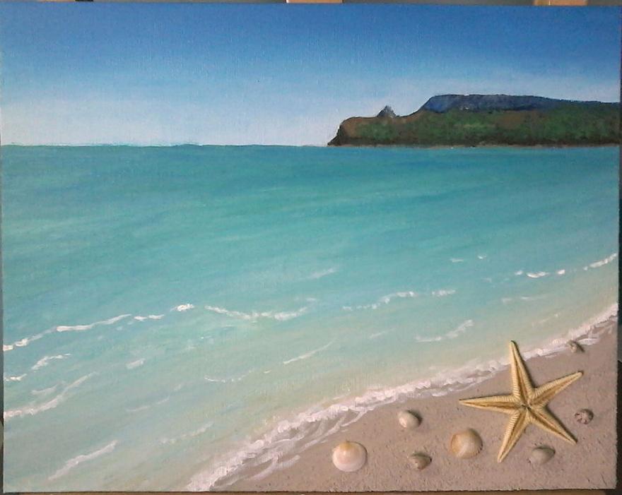 Per realizzare la spiaggia ho aggiunto sabbia al colore e impreziosito il tutto con la stella marina e le conchiglie.